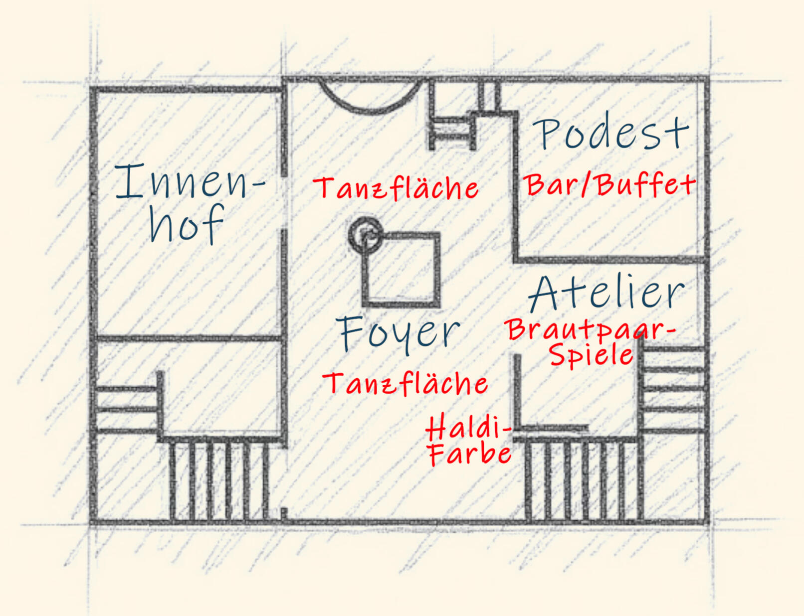 | etwa 22 Uhr | Brautpaar-Spiele im Atelier |