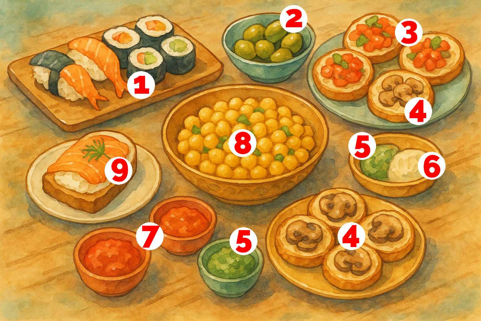 | Nigiri & Maki (1) Kleine Sushi-Häppchen aus Reis mit Fisch oder Gemüse, kunstvoll gerollt oder belegt |